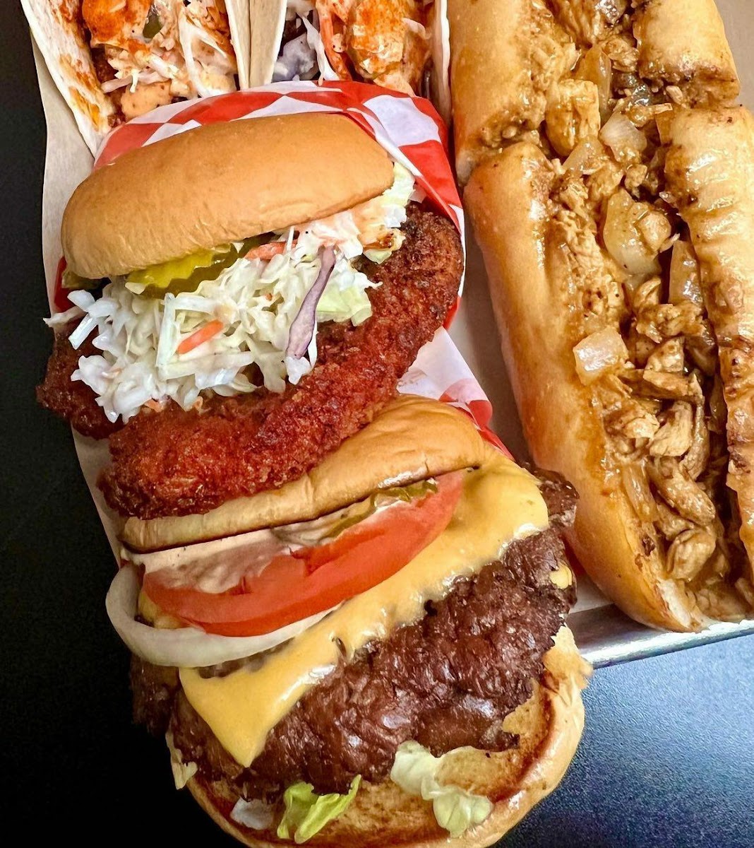 Nashville Hot Chicken Sandwich and Double Cheeseburger with Egg